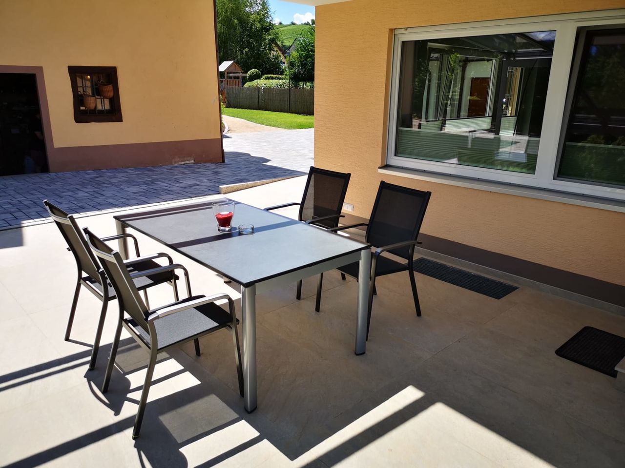 Frühstücken in der Sonne können Sie gemütlich auf unserer ca. 60 m² großen, teils überdachten Sonnenterrasse. Wie auch im Garten gibt es hier die Möglichkeit ein schmackhaftes Grillfest zu genießen. Mit einem Schwenkgrill und einem großen Esstisch steht einem unvergesslichen Grill-Abend nichts im Wege.